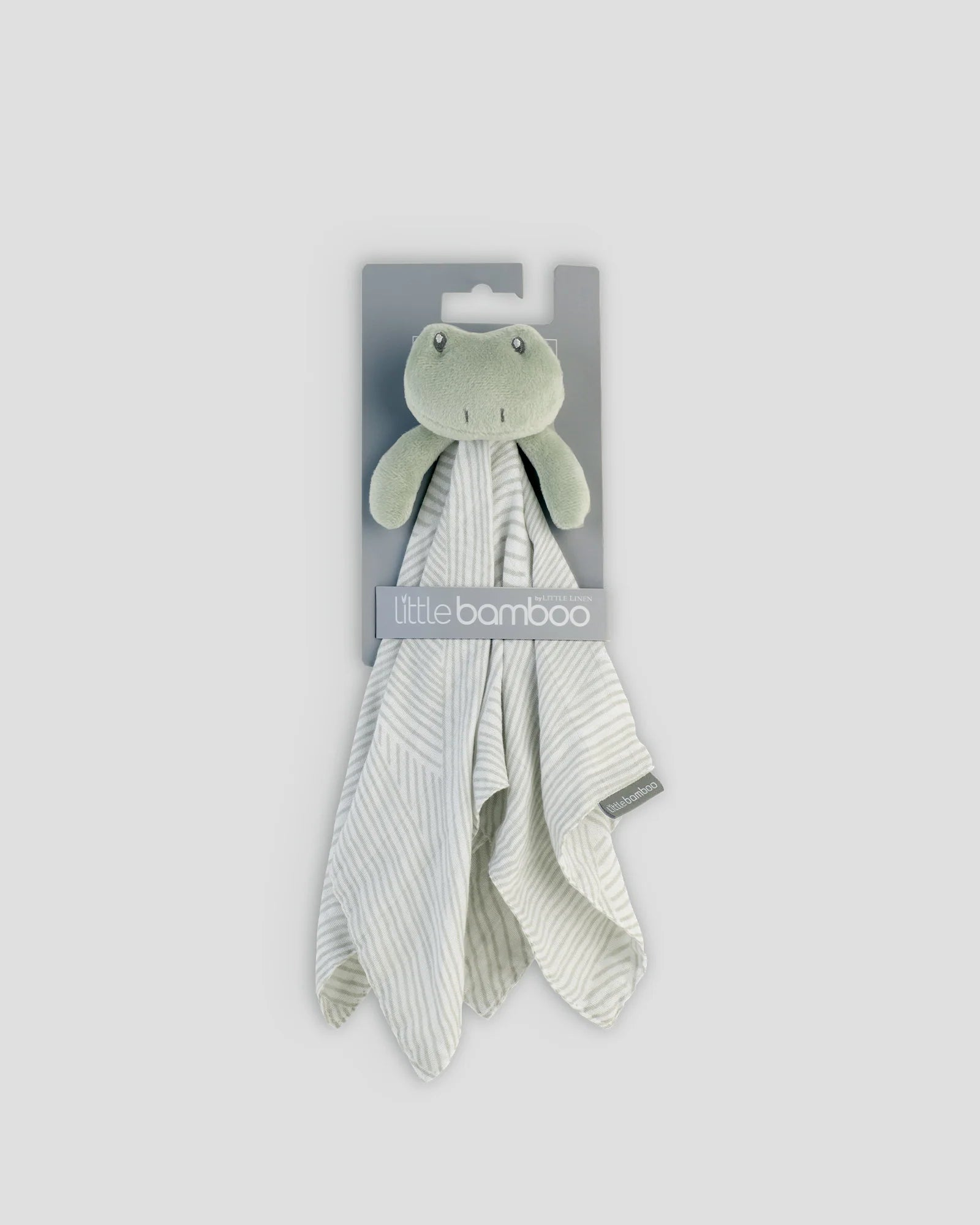 Little Bamboo presents the Freddie Frog baby bamboo security blanket, which combines a luxurious bamboo viscose/cotton muslin blend for the blankie body with an adorable plush character head, creating a comforting toy. Whether you refer to it as a security blanket, comforter toy, lovie, lovey, blankie, doudou, or even nunu, your little one is certain to cherish it.