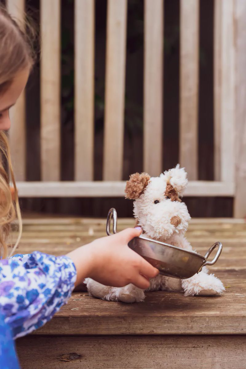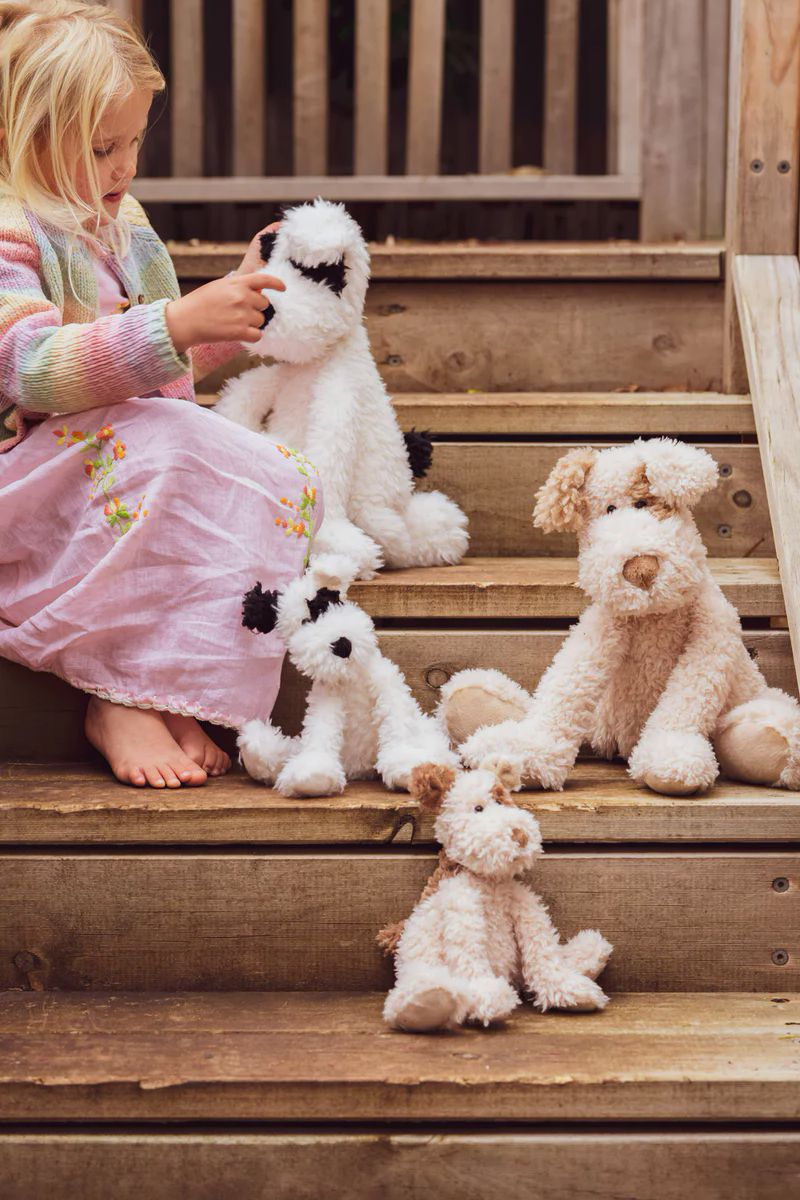 Buddy the Pup, small, sweet & bursting with energy, loves to be around people. He isn't shy like his dad, Buddy Dog—in fact, he is quite the extrovert. He inherited his dad's piercing intellect & delights in performing tricks for anyone who will indulge him. Buddy the Pup can spin, shake hands, roll over, beg, & bark on cue (just be sure to give him a tasty Schmacko or liver treat afterwards). His dad wants him to study Law when he grows up but Buddy Pup's secret ambition is to join the circus & become an acrobat.