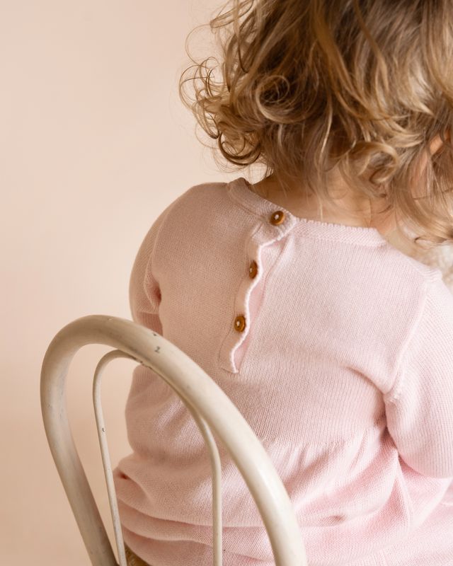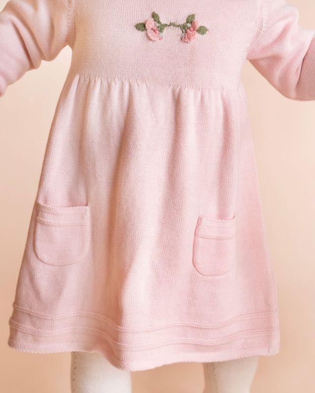 A beautifully soft organic cotton knit dress made for cuddly days and sweet little outings, this gentle pink style is full of timeless charm. Delicate hand embroidery blooms across the chest, adding a special heirloom feel, while the softly gathered skirt creates the prettiest silhouette for tiny explorers. Designed to keep little ones cosy and comfortable, it’s a piece to treasure now and pass on later.