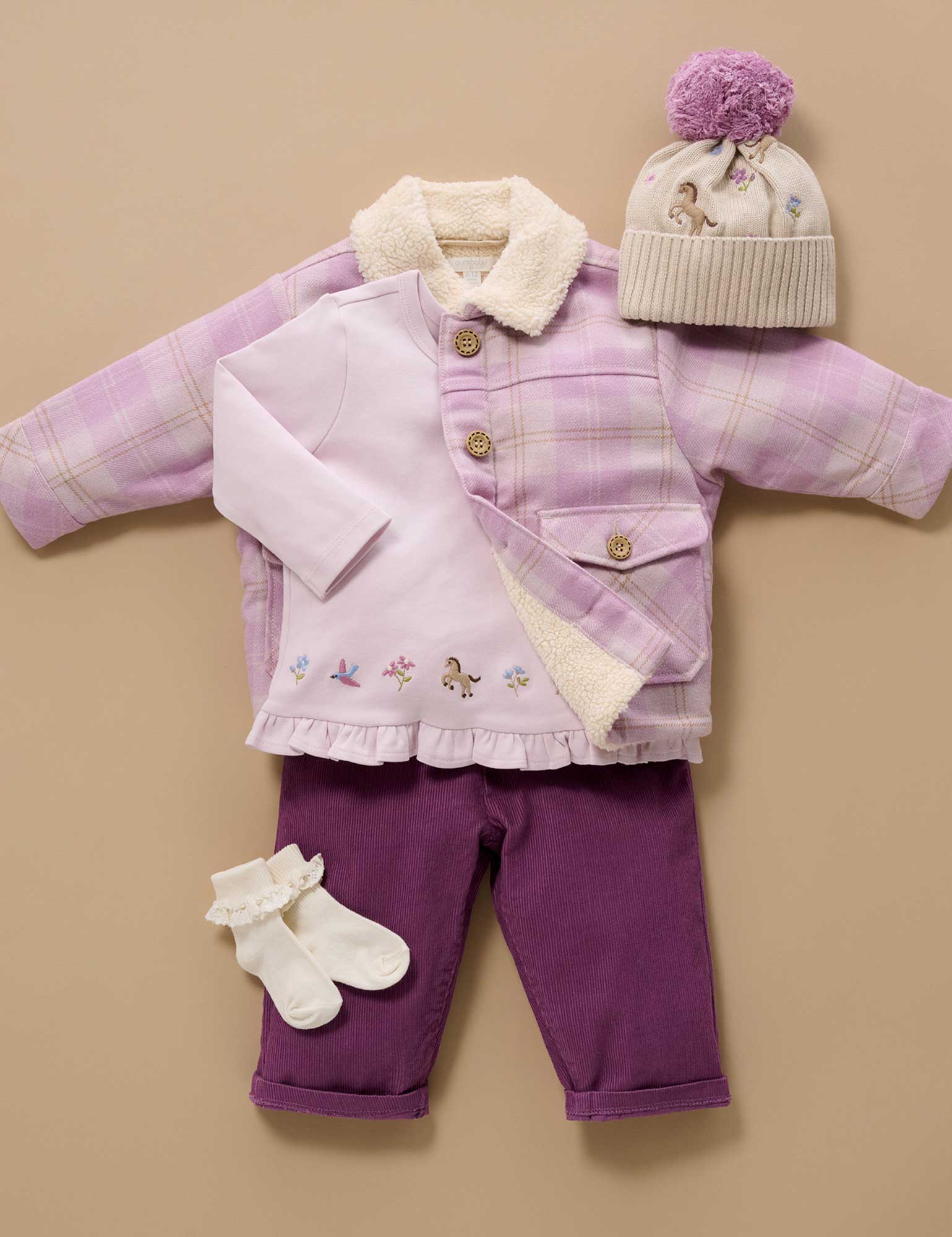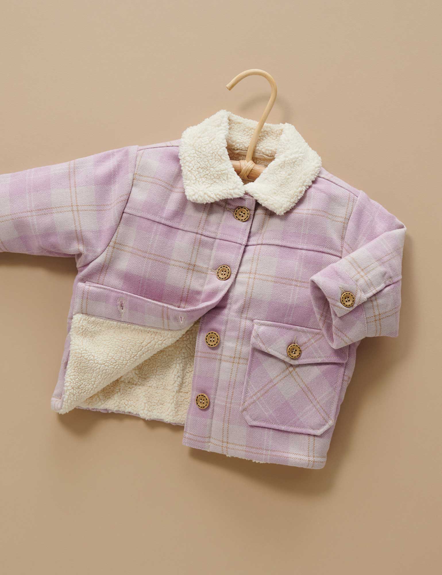 Dress your little one warm and snug in our stylish Check Shearling Jacket. The perfect layering piece for all year round, made from a soft wool blend outer, with a cosy faux shearling body lining. Pair with our corduroy pants or leggings for a warm outfit.