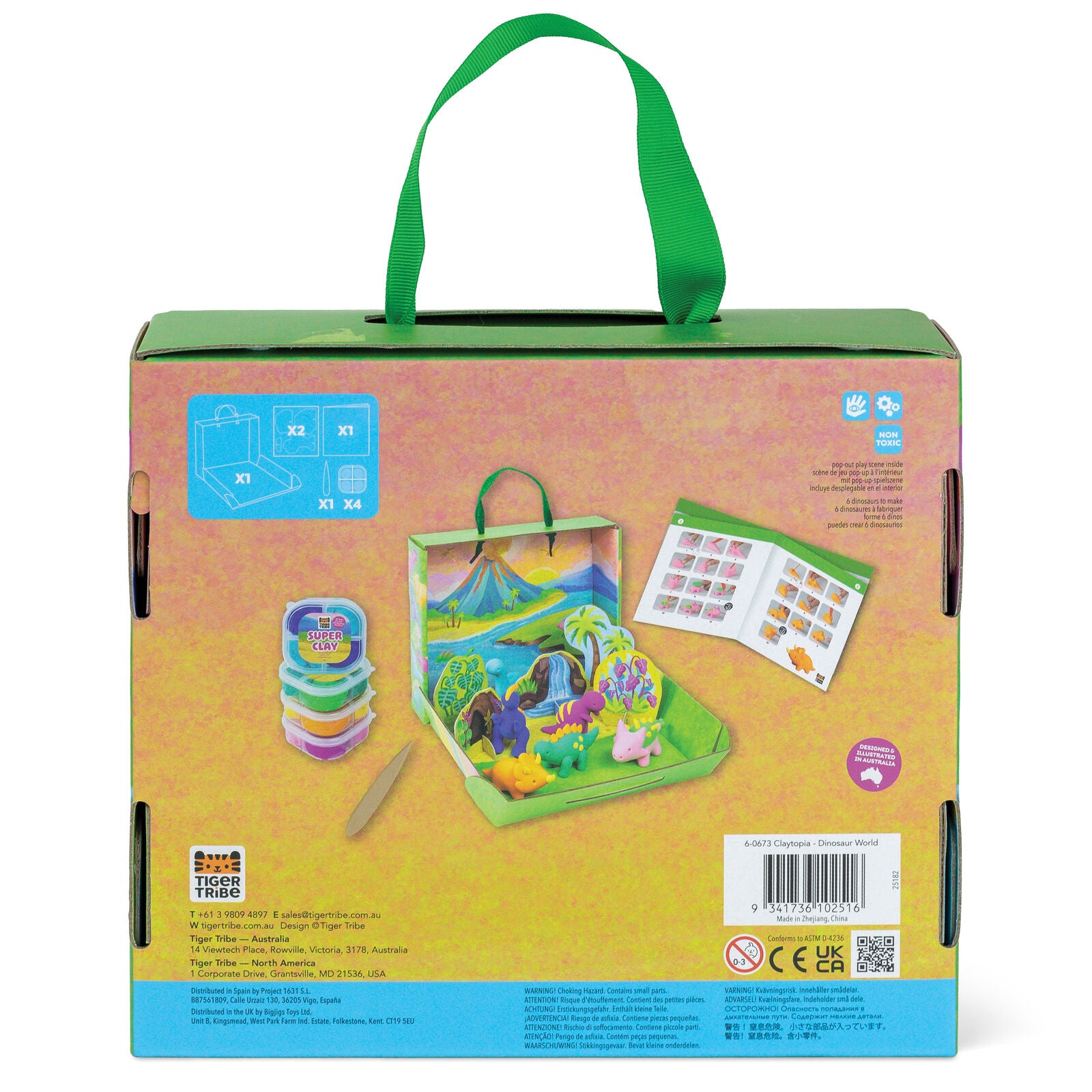 - Includes: 8 colours (160g) of air-drying clay to make 6 dinos, 1 sculpting tool, 2 pop-out accessory sheets, built-in play scene, visual instructions