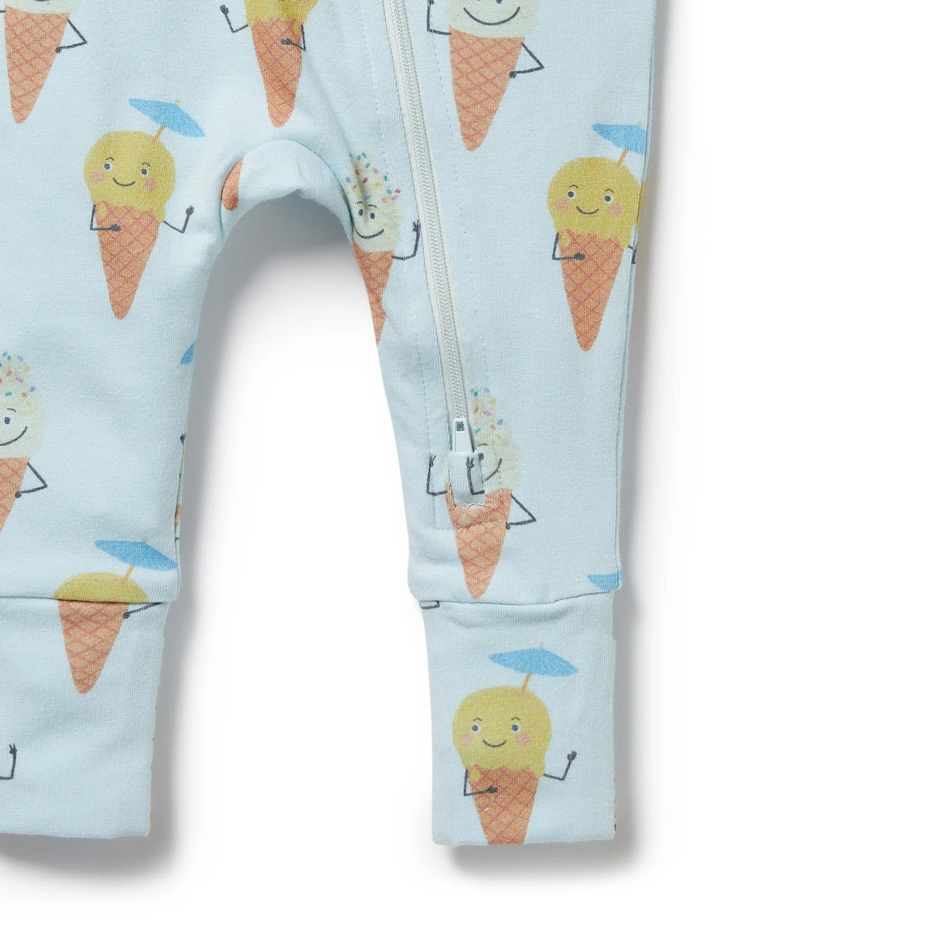 Keep your newborn comfy with this practical yet adorable frosty friends organic jersey zipsuit with feet. The design features fold over mittens (Sizes newborn to 000) to protect your babies face from little fingernails, and the option of a footed foot for growing bodies. Crafted from GOTS-certified organic cotton, it is gentle on your babies sensitive skin, and extra handy when having to make nappy changes. Features a gorgeous hand-illustrated print