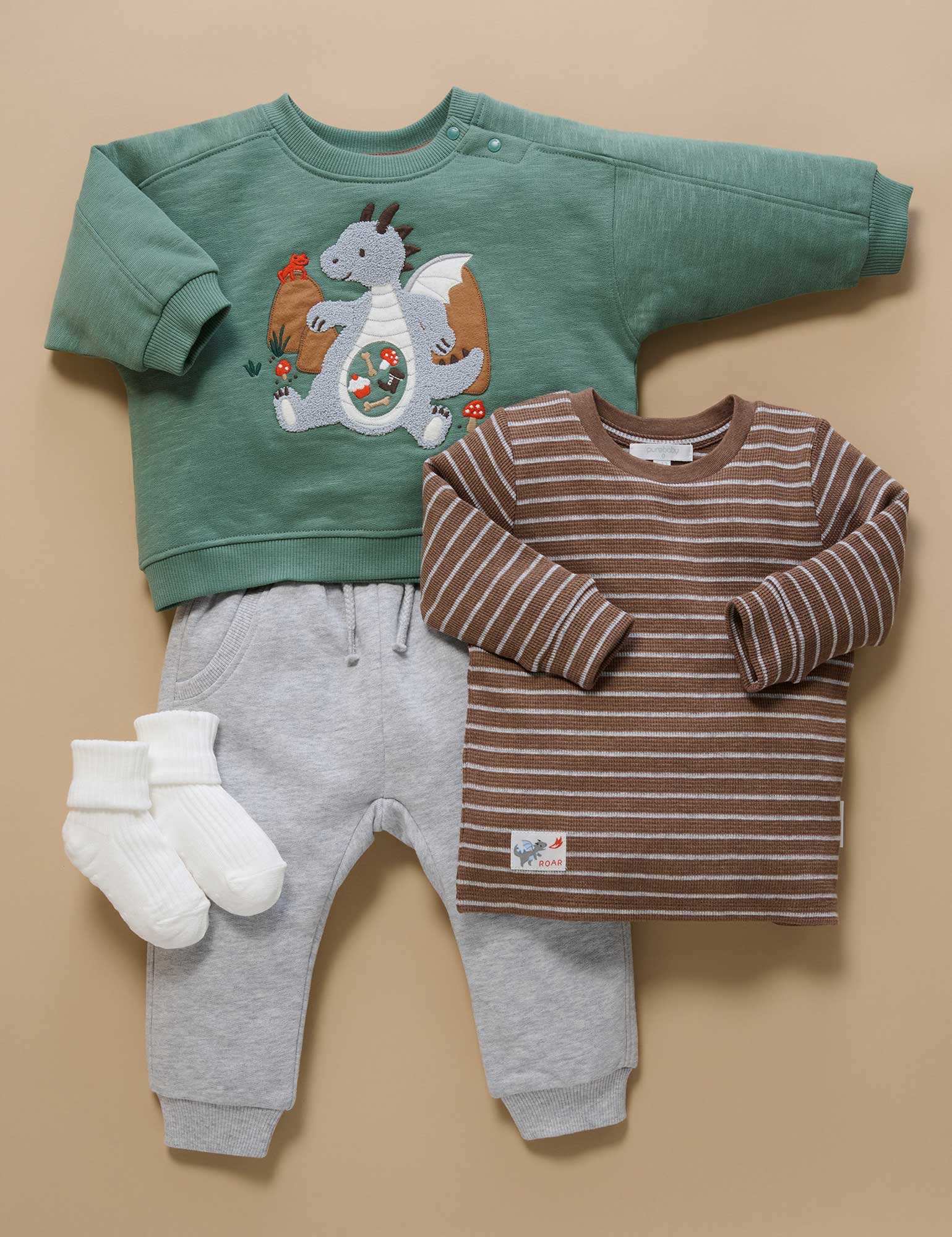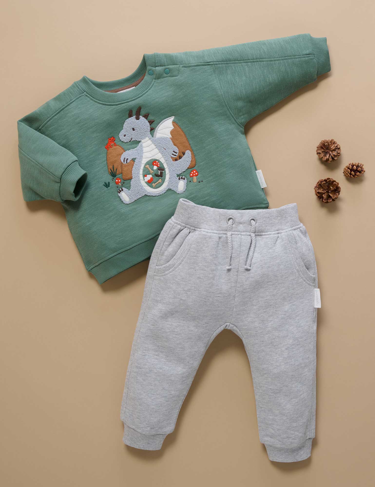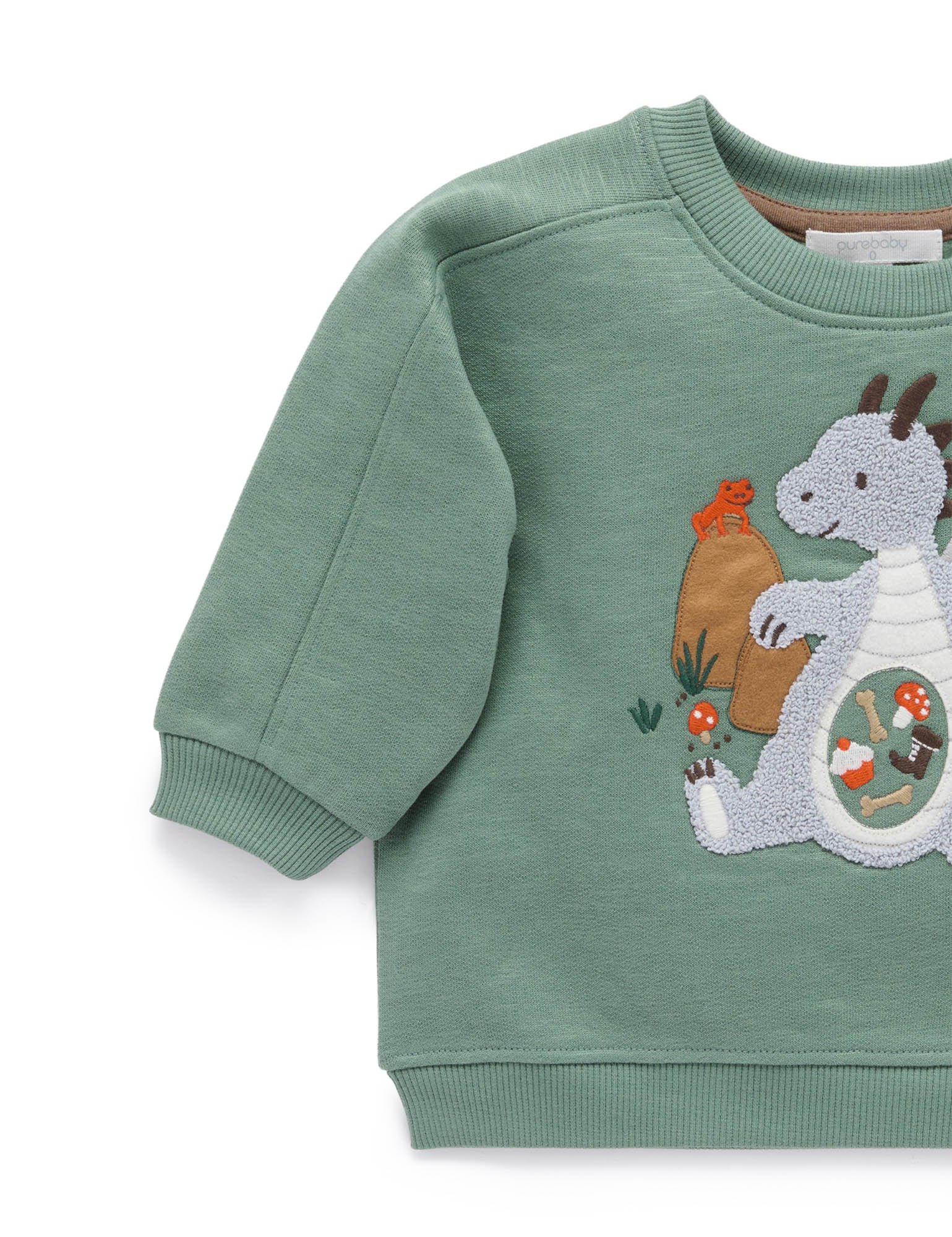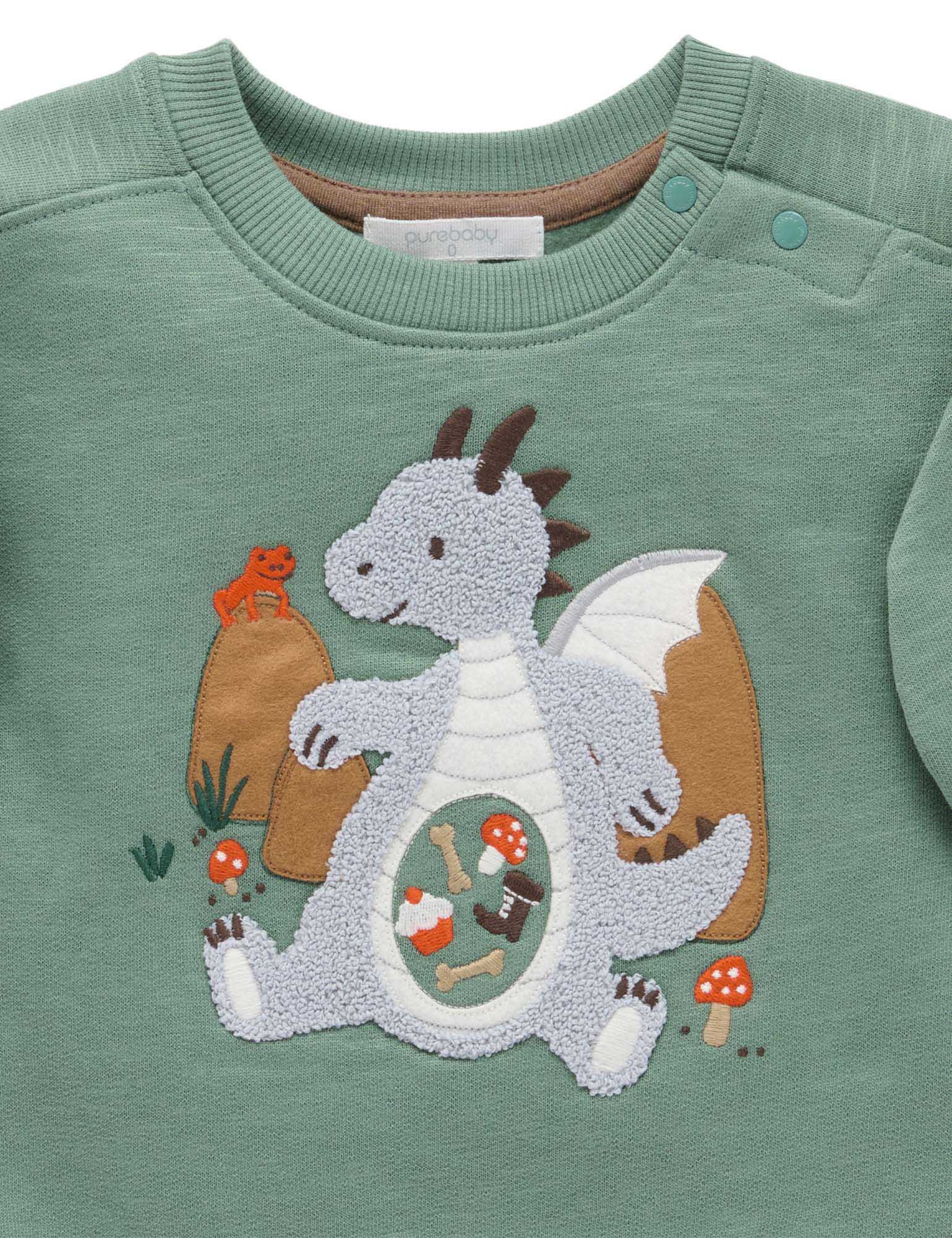 Our Hungry Dragon Windcheater features fun, fluffy dragon applique with a full belly! Made from thick, durable 100% Organic Cotton brushed fleece, this is a warm style that layers easily over tees or under jackets. Complete the look with our comfy Quilted Track Pants. Hungry dragon chenille applique at the chest Rib trims on the neck, cuffs and hem keep out chills Made from 100% Organic Cotton