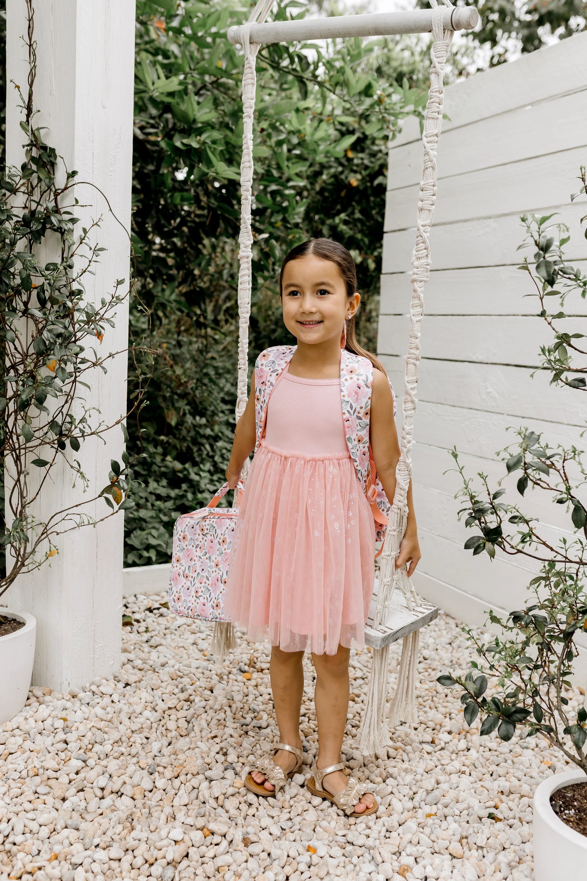 Pretty and practical, our Peach Blossom insulated lunch bag is made for sweet little moments. Featuring a soft floral print in dreamy peach tones and sage green leaves, this beauty keeps every snack and sandwich fresh and ready to enjoy.