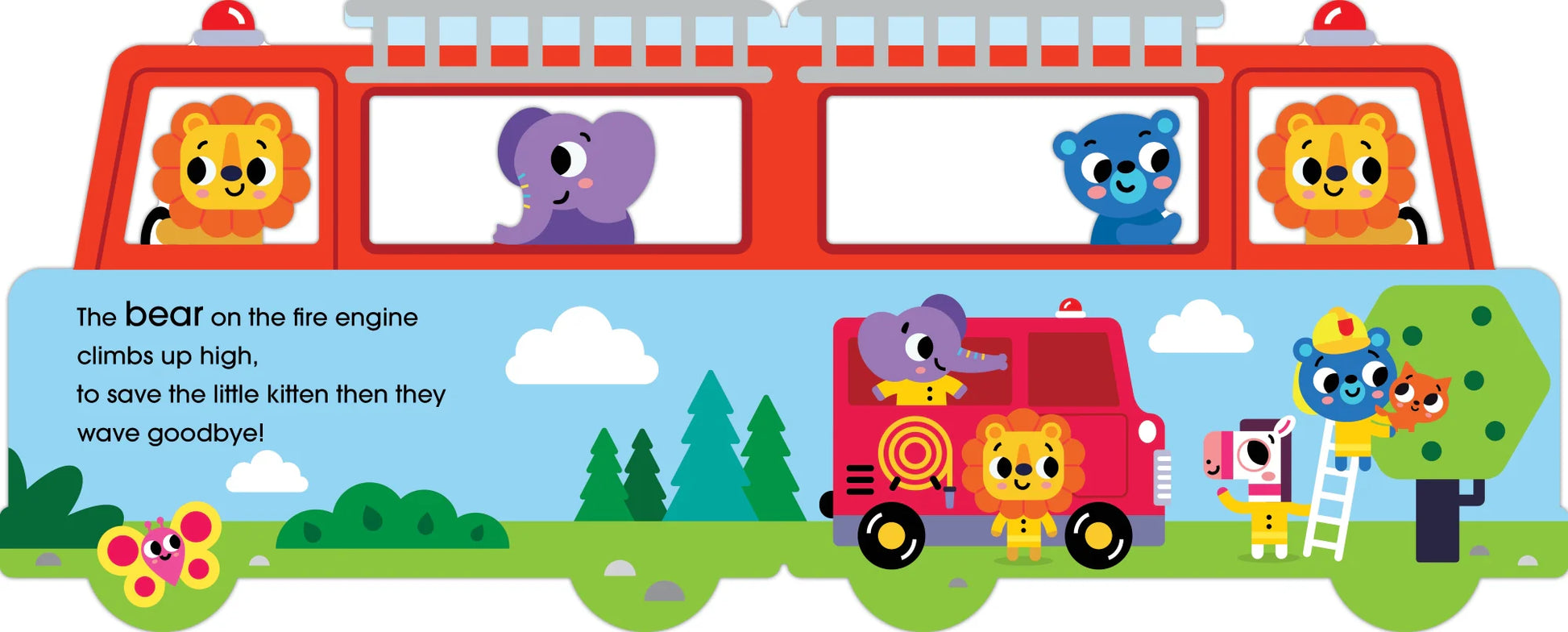 - Every turn of the page reveals a new character along for the ride on each spread!