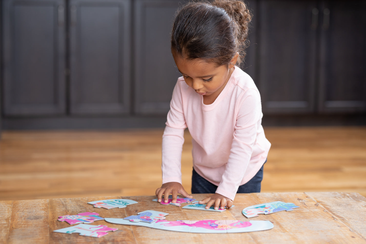 Pretty in pastel is Mermaid Dreams, our 12-piece mini puzzle, all wrapped up in a unique contour-shaped storage box. Perfect for puzzling enthusiasts aged 2+, the jumbo, sturdy pieces of this high-quality puzzle are ideal for little hands.