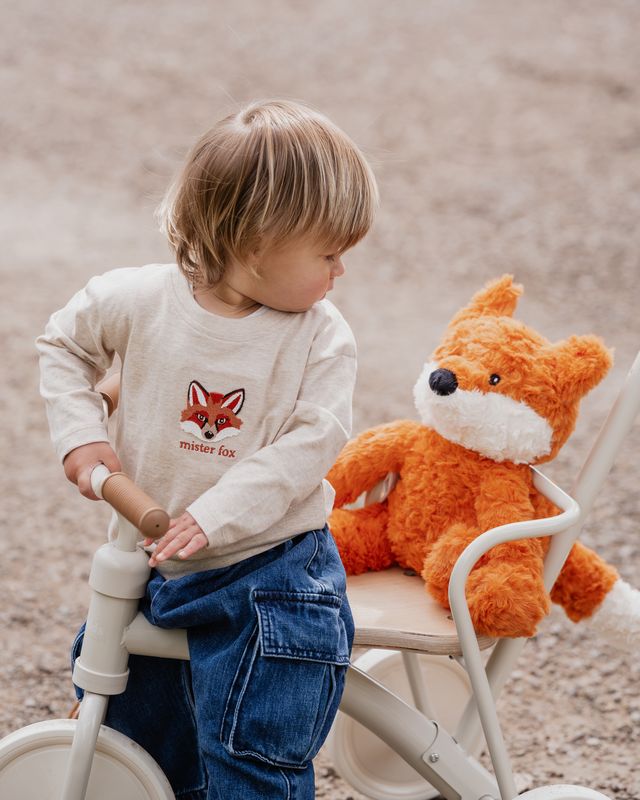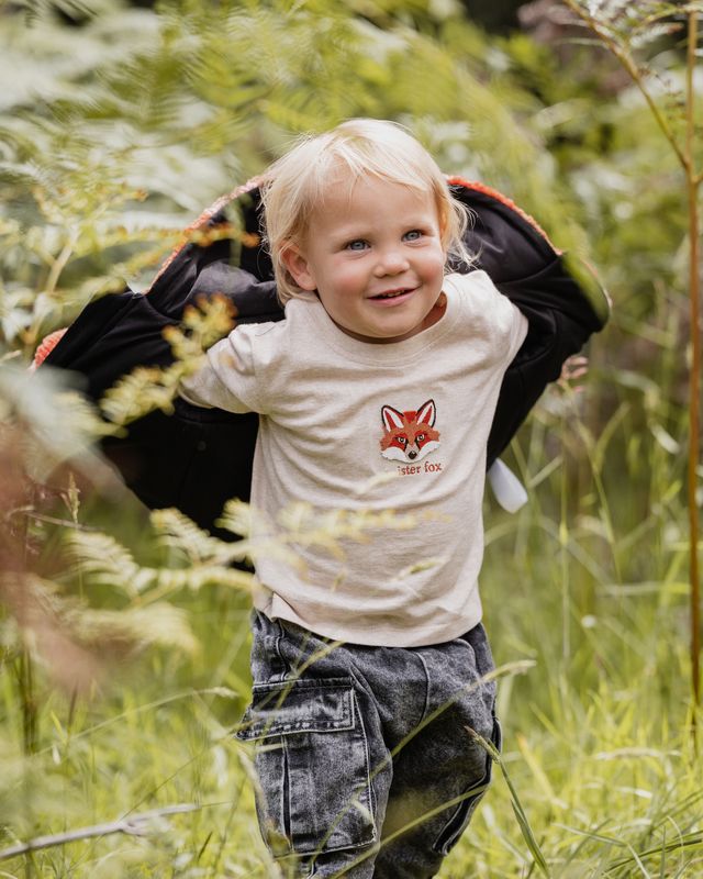 A sweet everyday layer, this soft cotton jersey tee brings gentle comfort and a playful touch with its Mister Fox embroidery. Designed with a press stud shoulder opening for easy changes, it is a simple, cosy essential for little wardrobes and perfect for layering through the cooler months.