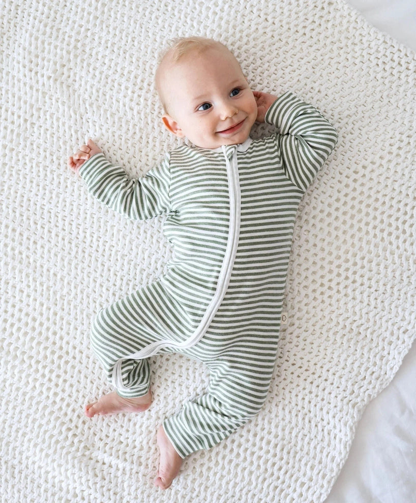 Our Growsuit is both functional and beautiful, we source only the finest GOTS certified Organic Cotton to ensure we are providing your baby with nothing but the best. Featuring a two-way zip and a safety fold for quick and easy dressing. Soft and stretchy, our growsuits are an easy-care, fuss-free option that’s easy to wear thanks to their modern, fitted style. Suitable for loungewear, daywear, birth announcements, or any occasion it may be, they make a great baby gift! * Two-way zip for easy dressing and fast nappy changes * Safety fold to protect their chin * Matching Classic Stripe Collection Singlet Bodysuit, Beanie and Bib * Made from 100% GOTS Certified Organic Cotton Our organic cotton is certified by The Global Organic Textile Standard (GOTS) Control Union. This ensures the highest standards of quality, environmental care and social responsibility.