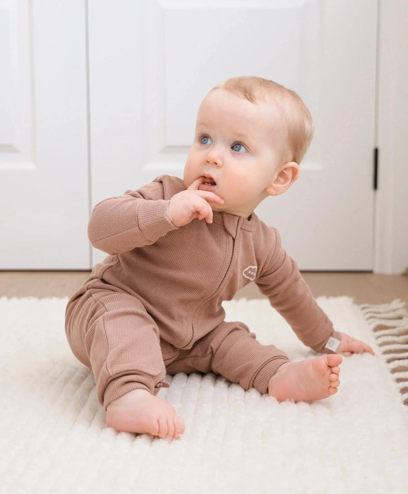 Created for crisp, cooler weather, our waffle collection is made from 100% GOTS-certified organic cotton to keep your little one warm through spring, autumn, and winter. The classic waffle knit offers lasting durability, excellent shape retention, and a cosy, gentle feel. The waffle growsuit includes a 2-way zip is convenient for new mums when dressing the baby. Featuring subtle colours, complete the look with long sleeve bodysuits, leggings, bibs and beanies. * Two-way zip for easy dressing * Safety fold at the zip to protect their skin * Unisex colour options * Made from 100% GOTS Certified Organic Cotton Our organic cotton is certified by The Global Organic Textile Standard (GOTS) Control Union.
