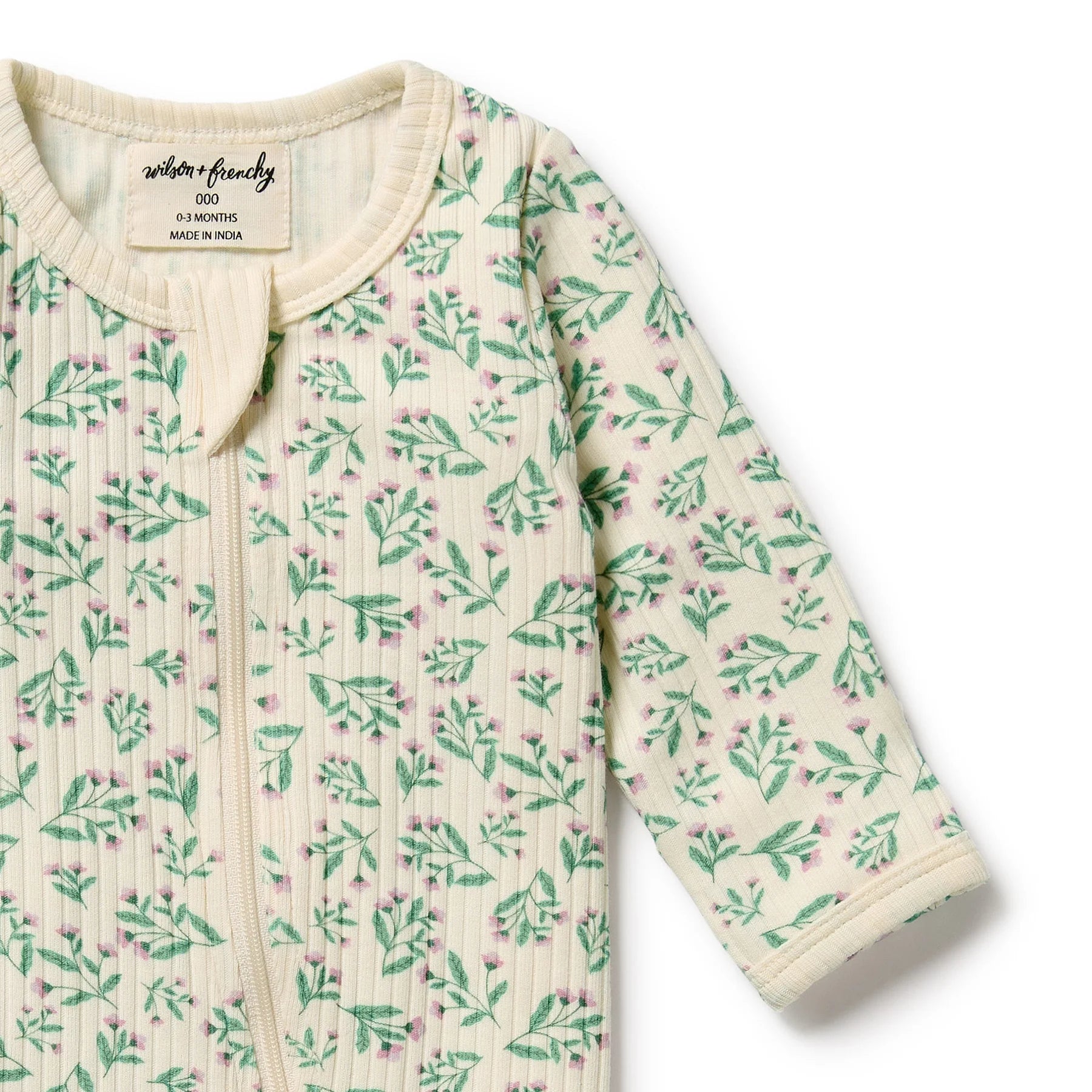 Keep your newborn comfy with this practical yet adorable organic jersey zipsuit with feet. The design features fold over mittens (Sizes newborn to 000) to protect your babies face from little fingernails, and the option of a footed foot for growing bodies. Crafted from GOTS-certified organic cotton, it is gentle on your babies sensitive skin, and extra handy when having to make nappy changes. Features a gorgeous hand-illustrated print