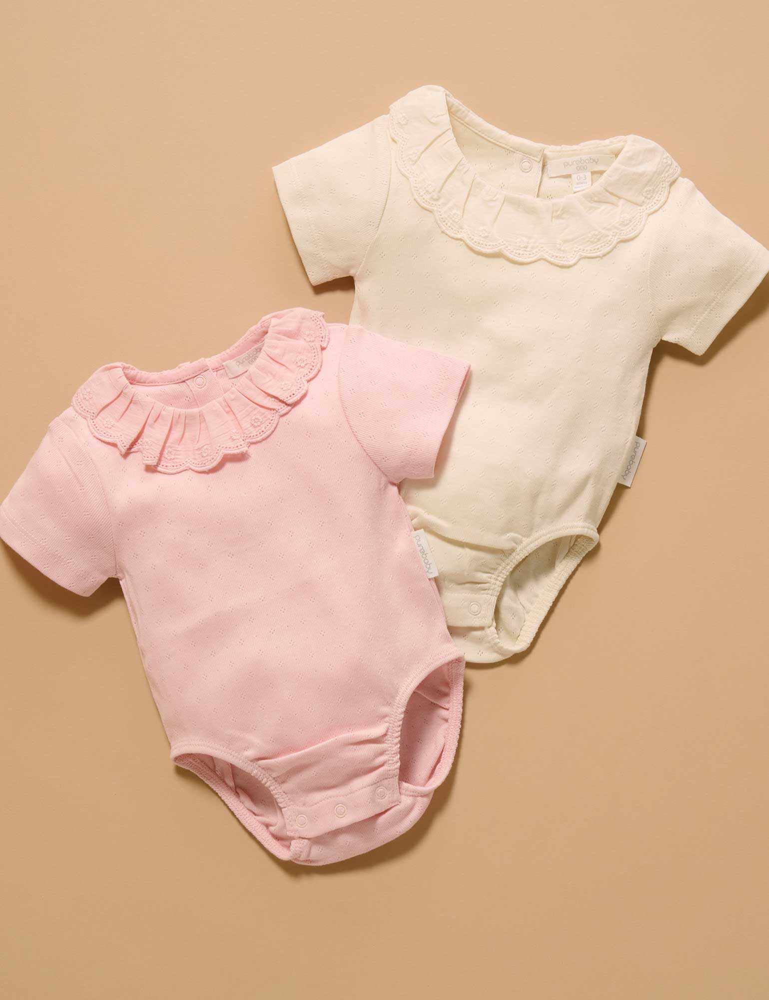 Our Pointelle Ruffle Bodysuit is a pretty piece to add to her layering wardrobe. Featuring a sweet, scalloped ruffle detail at the neck and snap clips at the leg and back for easy dressing. Made from the softest 100% Organic Cotton pointelle, with a subtle eyelet pattern. Style with leggings or under rompers for endless cute outfits. Scalloped ruffle detail at the neck Subtle eyelet pattern Snap clips at the back and leg for easy dressing Made from 100% Organic Cotton Pointelle