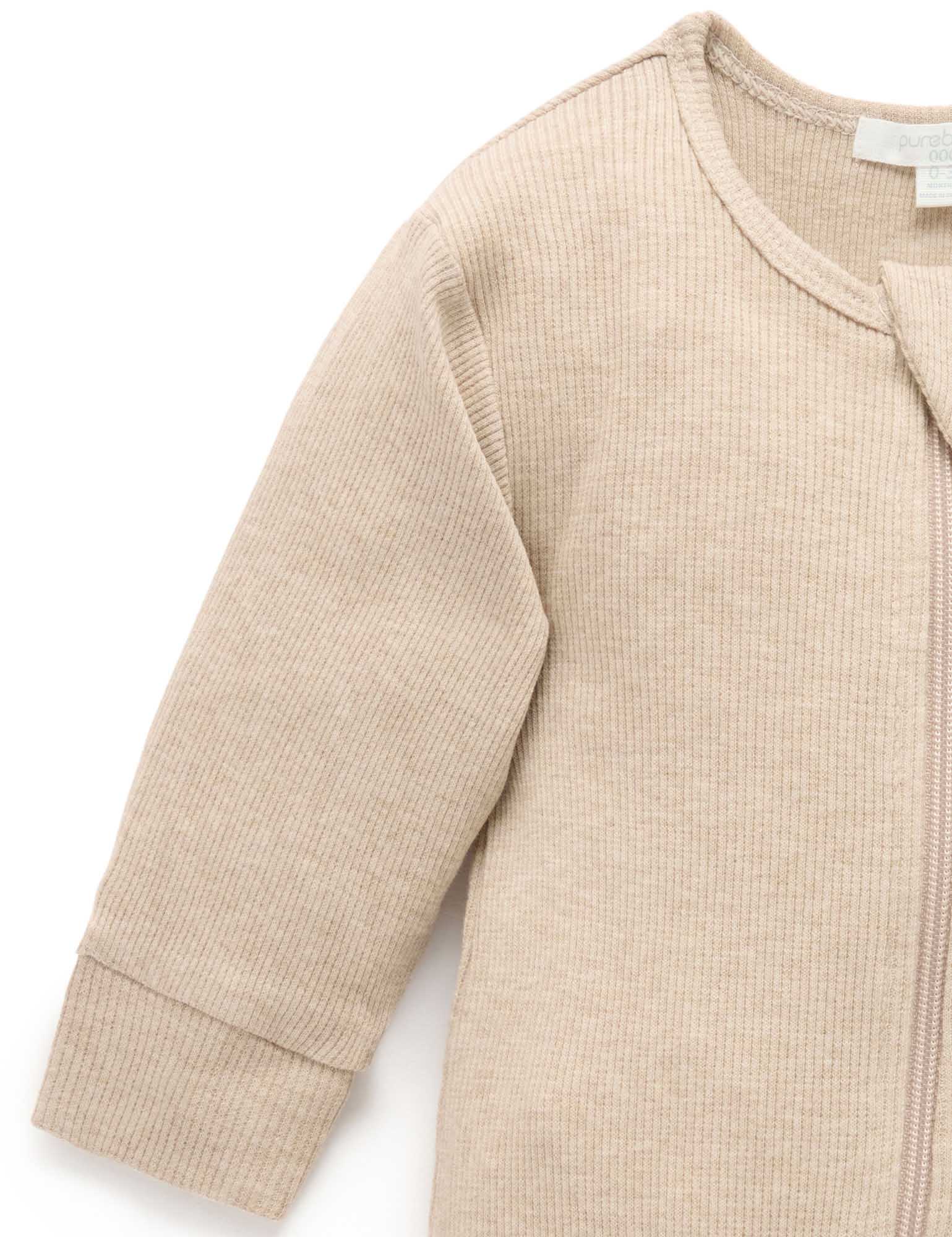You can never have enough basics, and our Ribbed Zip Growsuit is perfect for everyday wear and comfort! Featuring a two way zip all the way through with safety fold for quick and easy dressing. The footless design is great for little ones who are already walking, or for fast growers, so that their leg length isn't restricted by the built-in feet. Made from the softest organic cotton rib blend.