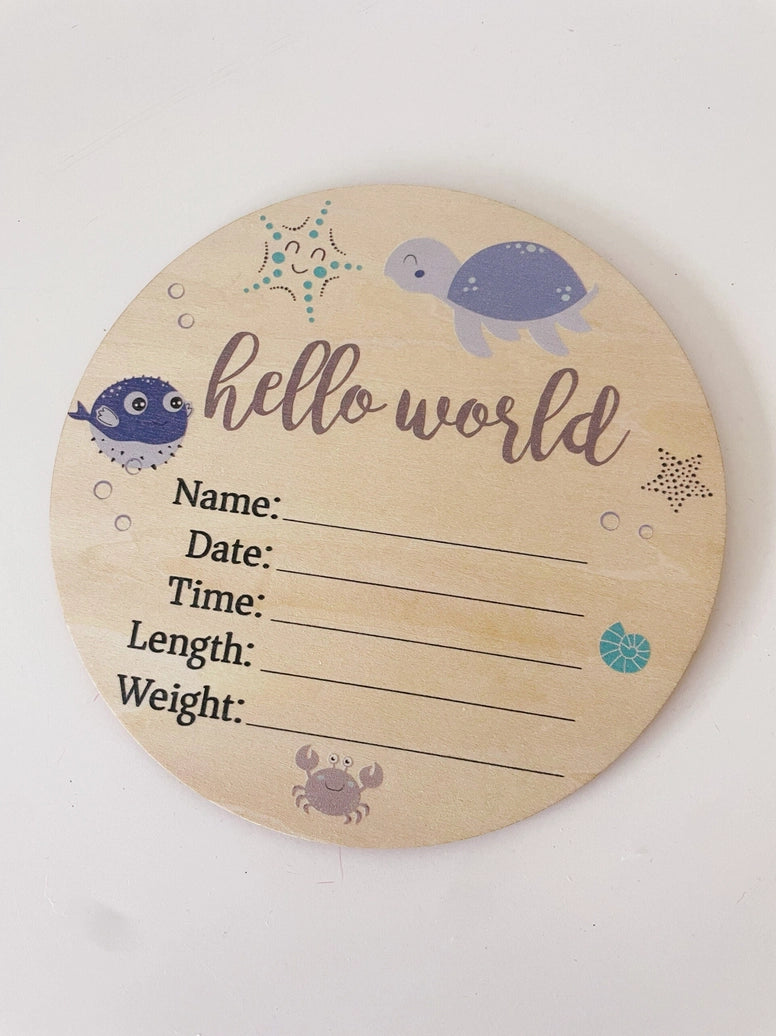 This birth announcement disc is uv printed on a quality 3mm wooden disc.