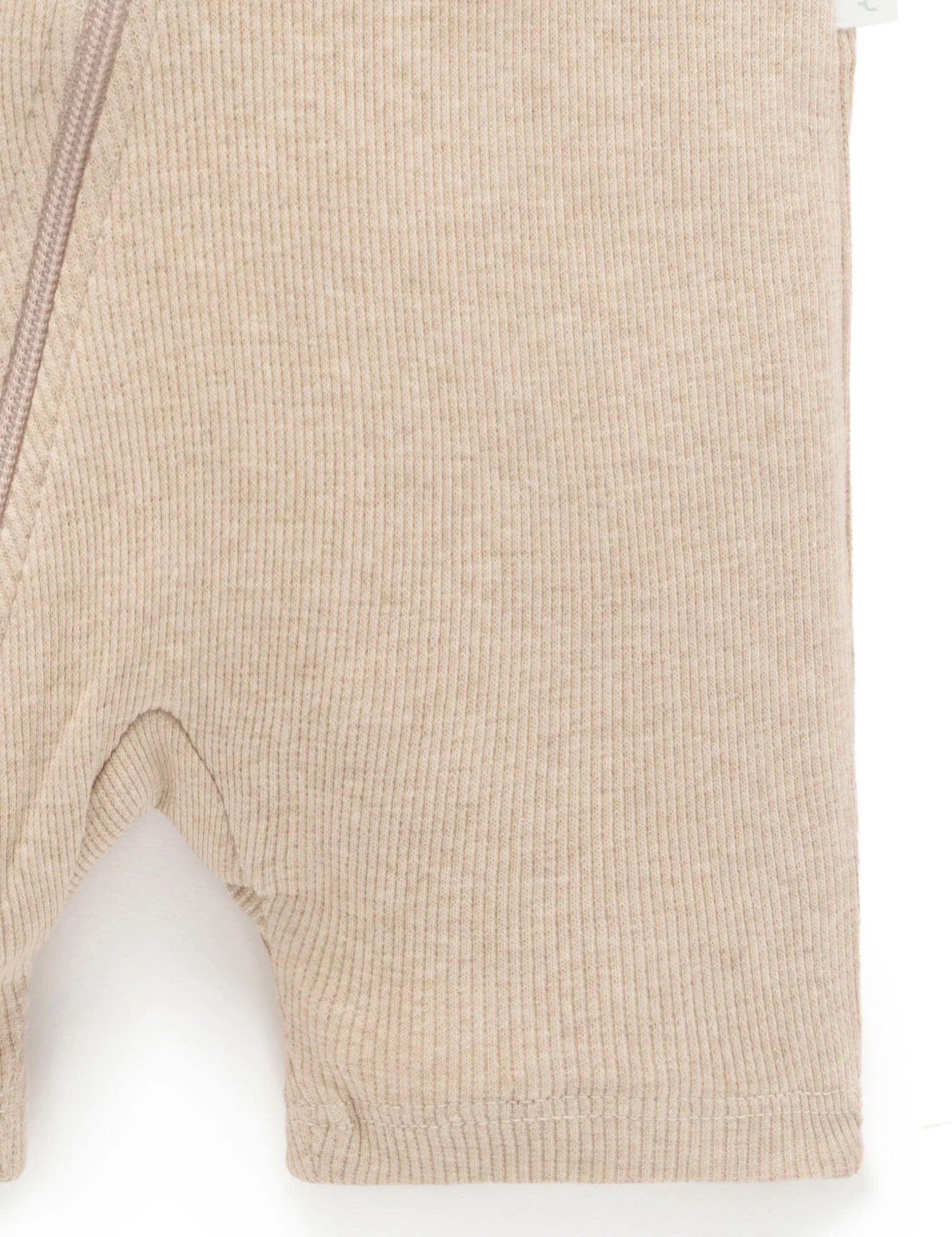 Short Ribbed Zip Growsuit - Biscuit Melange