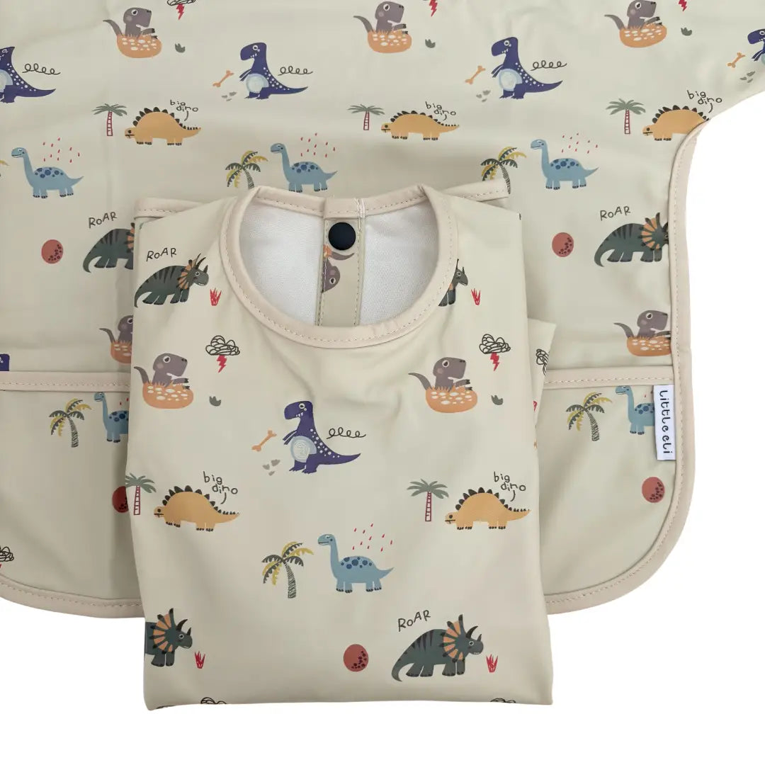 If you are looking for a solution for your little messy eater, then these smock bibs are for you. Made from 100% recycled polyester with a soft and waterproof finish. Each bib featuring a large pocket at the front designed to catch food with two-snap stud closure at the nape of neck and long sleeves with elastic cuffs.