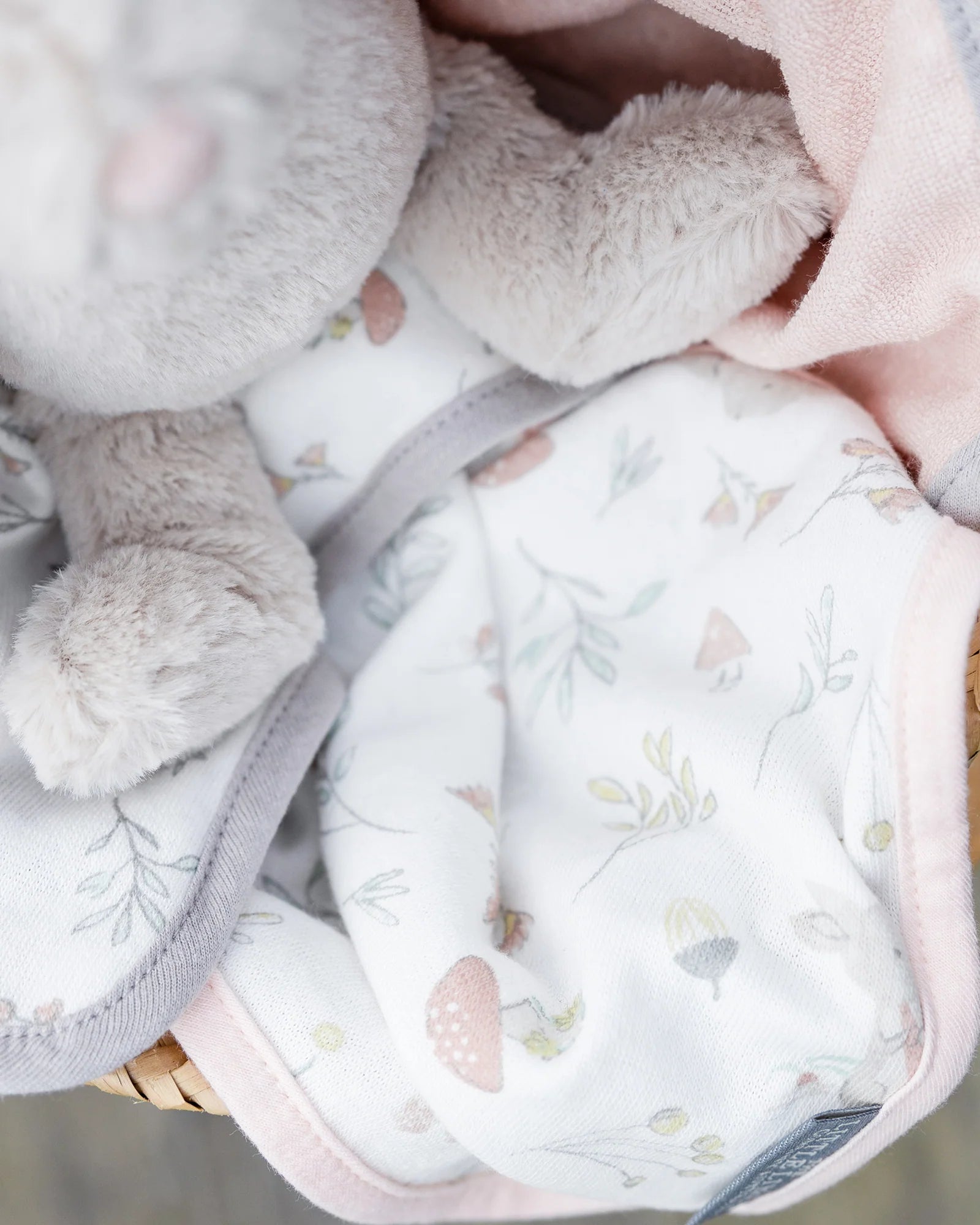 The Little Linen Company Harvest Bunny Plush Toy & Washers, the perfect companions for your little one! The adorable plush toy is a soft and huggable cuddly friend that will keep your child company during playtime and bedtime. Our washers are practical and versatile, made from soft printed knitted terry with contrasting trim.