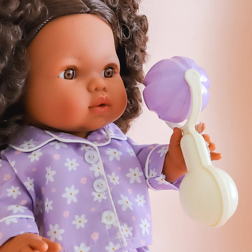 Introducing the Tiny Tummies Playtime Pack - a delightful mealtime adventure for your child and their tiny doll companion! Dress your dolly in adorable lilac daisy Pjs with cute fluffy bunny slippers. Quench their thirst with the new design Magic Milk Bottle. Plus, add some playtime fun with the Tiny Doll Rattle. Spark imagination and nurturing skills with this charming set! Includes: * NEW Tiny threads Lilac Daisy dolls PJs * Tiny threads Fluffy bunny slippers * Magic Milk Bottle * NEW Tiny Doll Rattle Specifics: * Made in China to Oceania, USA and European Standards * Suitable for ages 3+ adult supervision required * Suits most 34cm-38cm dolls (Paola Reina Dolls, Miniland 38cm Dolls, Mini Coletto Dolls) * Doll not included