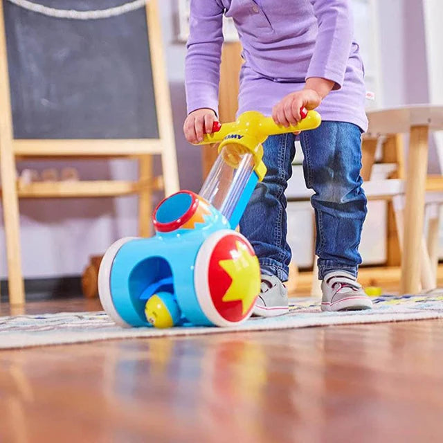 The Pic N Pop Ball Blaster is a unique walk-behind toy that gets your little one moving. One click of the button launches a colorful ball from the chute. Your little one chases after the balls and simply rolls over them to magically pick up and start the fun all over again. A simple-to-operate toy that gets your toddler toddling and teaches them cause and effect. Perfect for use either indoors or outdoors.